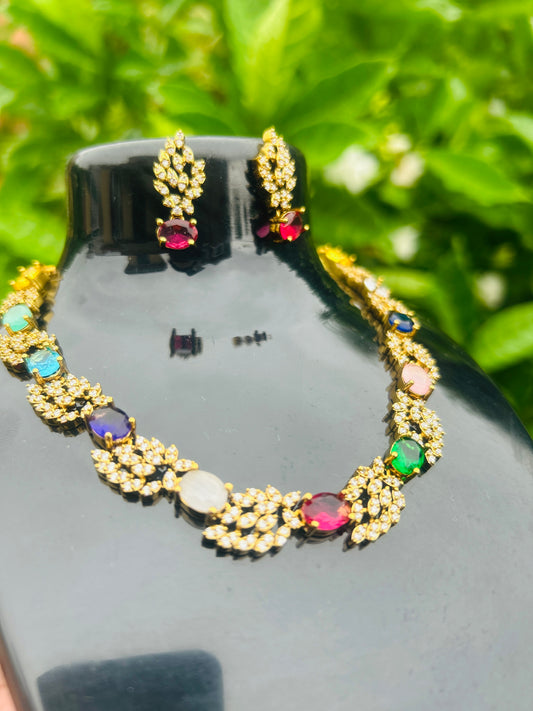 Multicolour Mehandi Finish Necklace Set