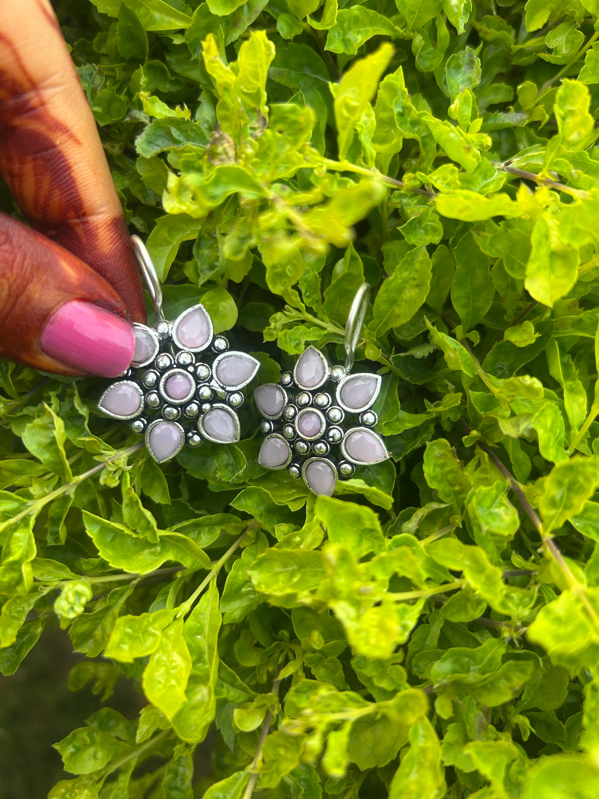 Oxidised Pastel Flower Earrings